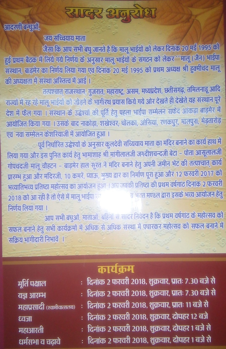 स्थापना वर्ष - 1995 श्री संचचियाय माताय नम :